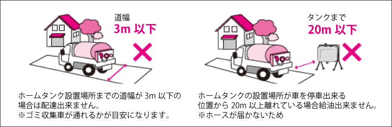 例)ハシゴなどを使う場所への給油 - A お客様宅までの道が除雪されていない場合、オイルタンクまでのホースを伸ばす範囲が除雪されていない場合、給油をお断りさせていただく場合がございます。