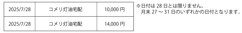 灯油宅配ご利用明細は、毎月5日頃にコメリ灯油宅配マイページに表示されます。